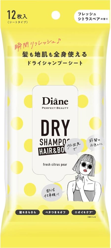 マツモトキヨシ(ドラッグストア)では、『メリット デイプラス ドライシャンプーシート』や『ダイアン ドライシャンプー シート フレッシュシトラスペアの香り』などの「旅行用シャンプーシート」が販売されています。