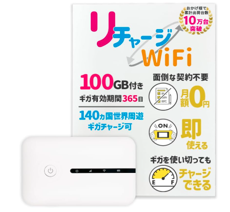 1.リチャージWiFi 1年間使える ギガ付ポケットWiFi