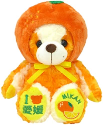 愛媛県産のみかんの被り物をした、かわいいテディベアのぬいぐるみです。