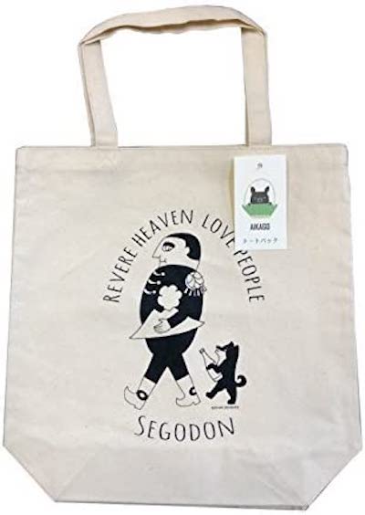 鹿児島県在中のデザイナーが西郷隆盛のイメージを一新したユニークな絵を描き、トートバッグなどの雑貨に印刷されています。
