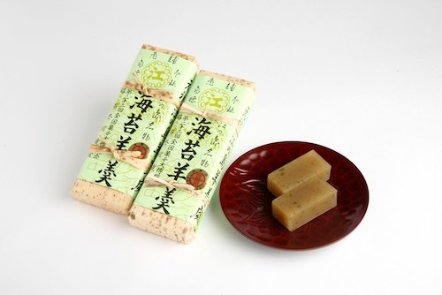 主張の強すぎない磯の風味が上品な、口当たりはなめらかな羊羹です。