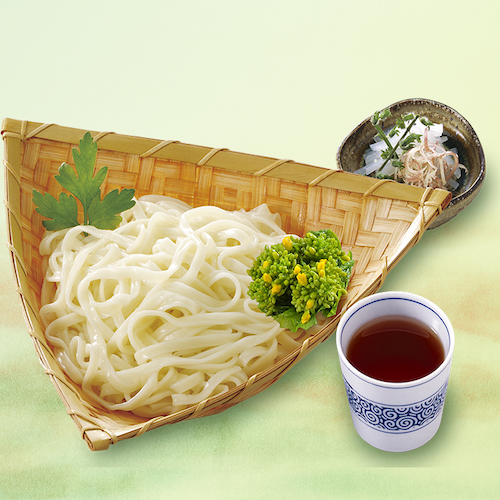 冷たいざるうどんを醤油だれや胡麻だれにつけて食べるスタイルが一般的で、シンプルに素材そのものの味を楽しめます。