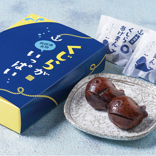 食べてしまうのがもったいないくらいかわいいくじらのお菓子は、昔懐かしいかりんとう風味のお饅頭です。