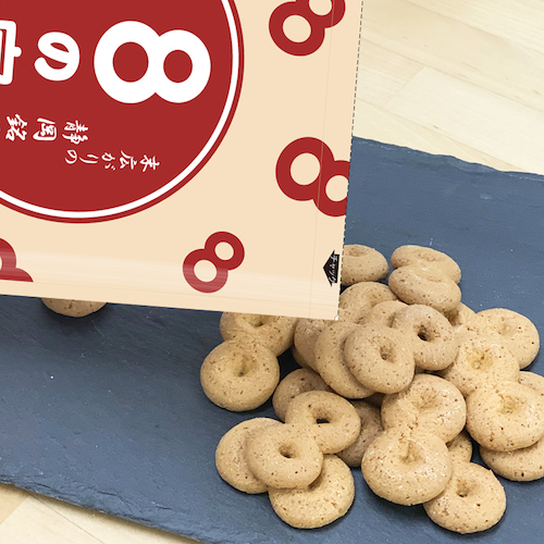 こちらは、数字の〝8〟の形をした、可愛い静岡ボーロのお土産。