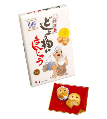こちらの『どじょう掬いまんじゅう』は、踊りに欠かせないひょっとこのお面をモチーフに1967年に発売されたお菓子。