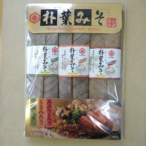 多くの商品は、朴葉と味噌がセットになっています。