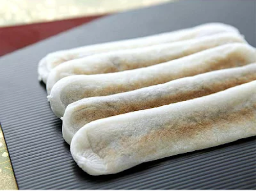 「なが餅」は、江戸時代から三重県の伊勢参りや参勤交代の際に食べられていたとされていて、その長細い形状から「牛の舌餅」や「砥餅」とも呼ばれていました。