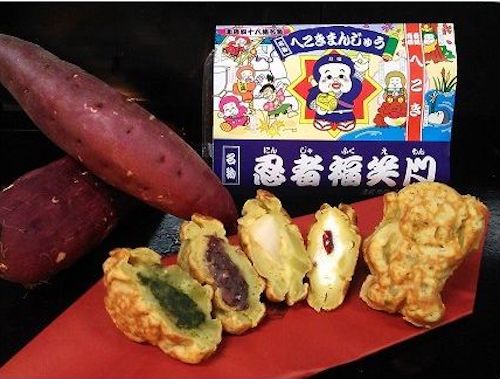 生地に特徴があり、さつまいもが生地にたっぷりと使われていて、これが『へこきまんじゅう』という独創的な名前にも通じています。