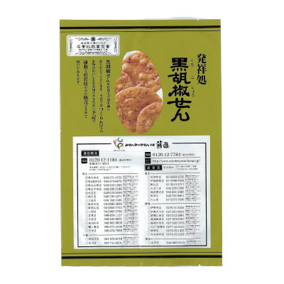 1924年創業の老舗製菓店・煎遊により製造・販売されている『黒胡椒せん』は、パリッと軽やかな食感とスパイシーな風味が特徴のおいしい煎餅です。