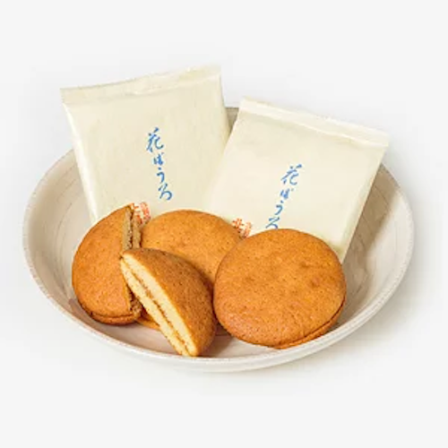こちらの『花ぼうろ』は、『丸芳露』の生地にバターとアーモンドを加えて洋風にアレンジしたもので、生地の芳ばしさと中に挟まれたあんずジャムの上品な甘さを楽しむことができます。