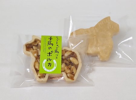 そんな伝統行事をモチーフに作られた『チャグチャグ馬ッコ 子馬のポルカ』は、歯応えの良いくるみと岩手県産の米にキャラメルを絡めたものが、モナカ皮に詰められたお菓子。