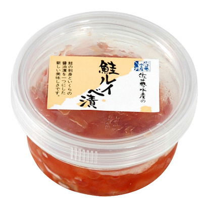 海産物専門店「佐藤水産」の『鮭ルイベ漬』は、北海道産の天然鮭といくらを〝鮭醤油〟のタレに漬け込んだ逸品です。