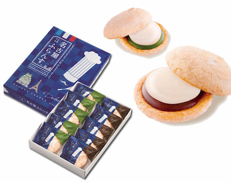 和菓子の代表格である「おもち」が、フランス生まれの焼菓子「ダックワーズ」でサンドされた独特なお菓子で、軽い食感と本格的な洋菓子の味わいを楽しめるお菓子です。