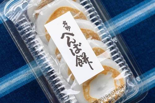 もともと卵焼きをつくる機械で製造されている『へんば餅』は、焼き目がすべて異なっていて、製品ごとの個性も楽しむことができます。