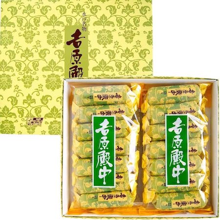 1852年創業の老舗和菓子店・亀じるしにより製造・販売されている『吉原殿中』は、きなこの風味豊かな、昔ながらのお菓子のお土産です。