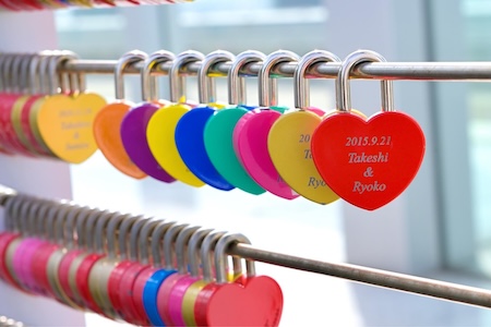 梅田の人気観光スポット・梅田スカイビルのお土産屋さんで販売されている『ハートロック』は、おしゃれなハート型の南京錠です。