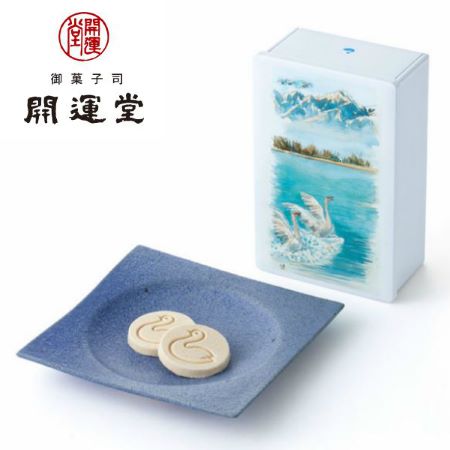 白鳥が型押しされたポルポローネで、口に入れた瞬間にほろほろとほどけるやさしいくちどけです。