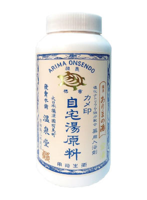 有馬温泉の金湯は、入浴後の保温効果が高く湯冷めしにくいとされていて、こちらの『カメ印 自宅湯原料 金湯』はその成分を分析して忠実に再現された入浴剤です。