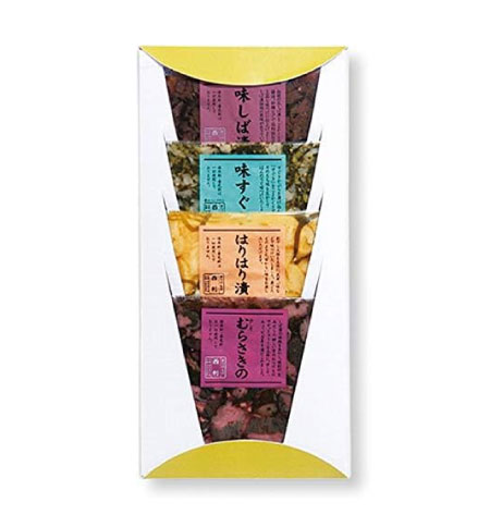 赤しそやミョウガなどで漬け込まれた〝赤しそむらさきの〟や、割干し大根に昆布と一味を加えた〝はりはり漬〟など、京都の伝統的な漬物を楽しむことができます。