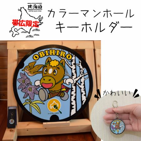 帯広市限定のマンホールのデザインのキーホルダーです。