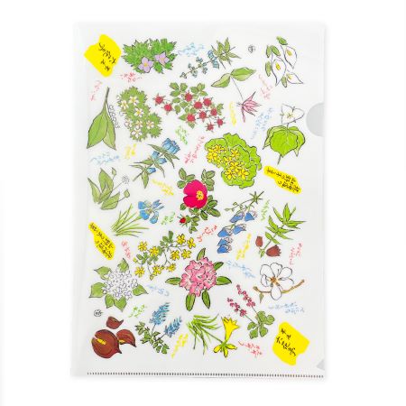 六花亭のパッケージの花柄がデザインされたクリアファイルです。